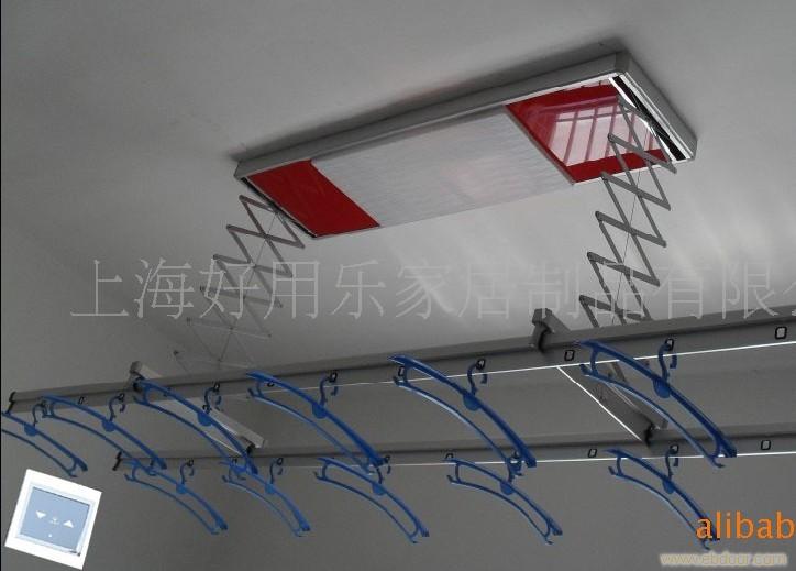 HYL-02型遥控晾衣架——由升降电机、电源、遥控接收发射器、卷绳轮、定位轮、不锈钢钢丝绳和连接器等组成,具备自动限位功能,这样就省去了传统开关限位装置。